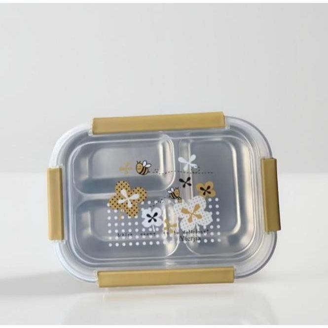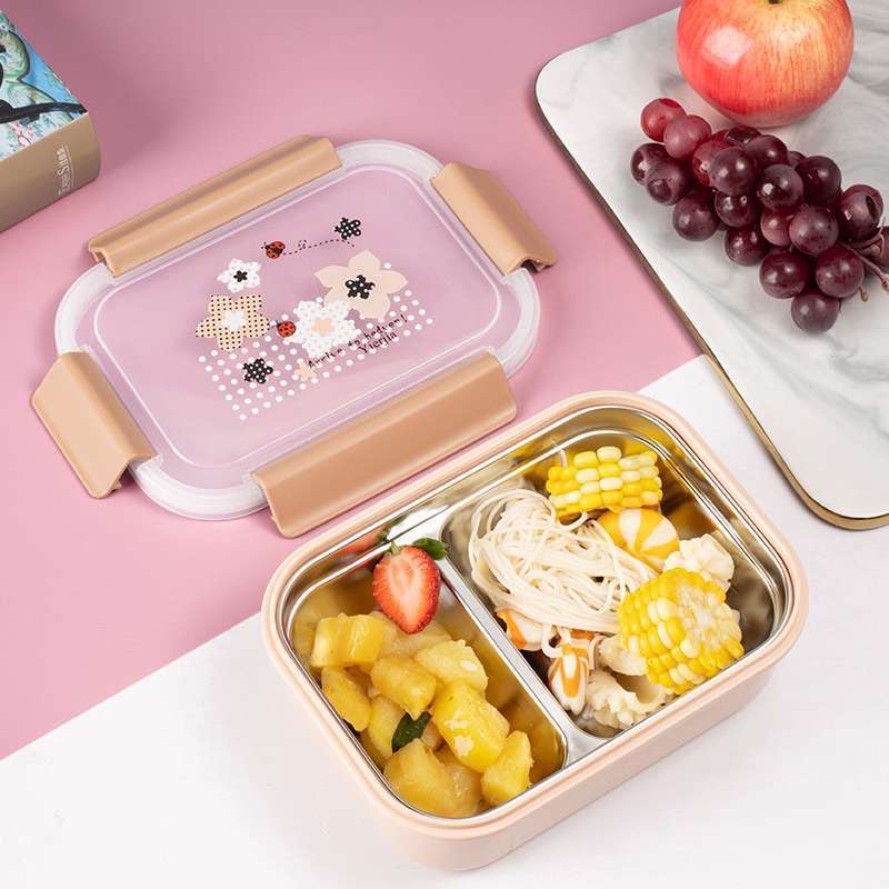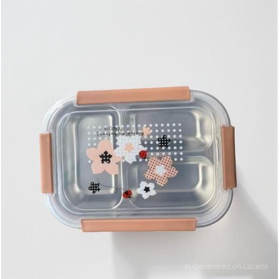 Kotak Makan Siang Stainless 3 Sekat Sendok Kotak Makan Siang Portabel Kotak Penyimpanan Anti Bocor Wadah Makanan Si