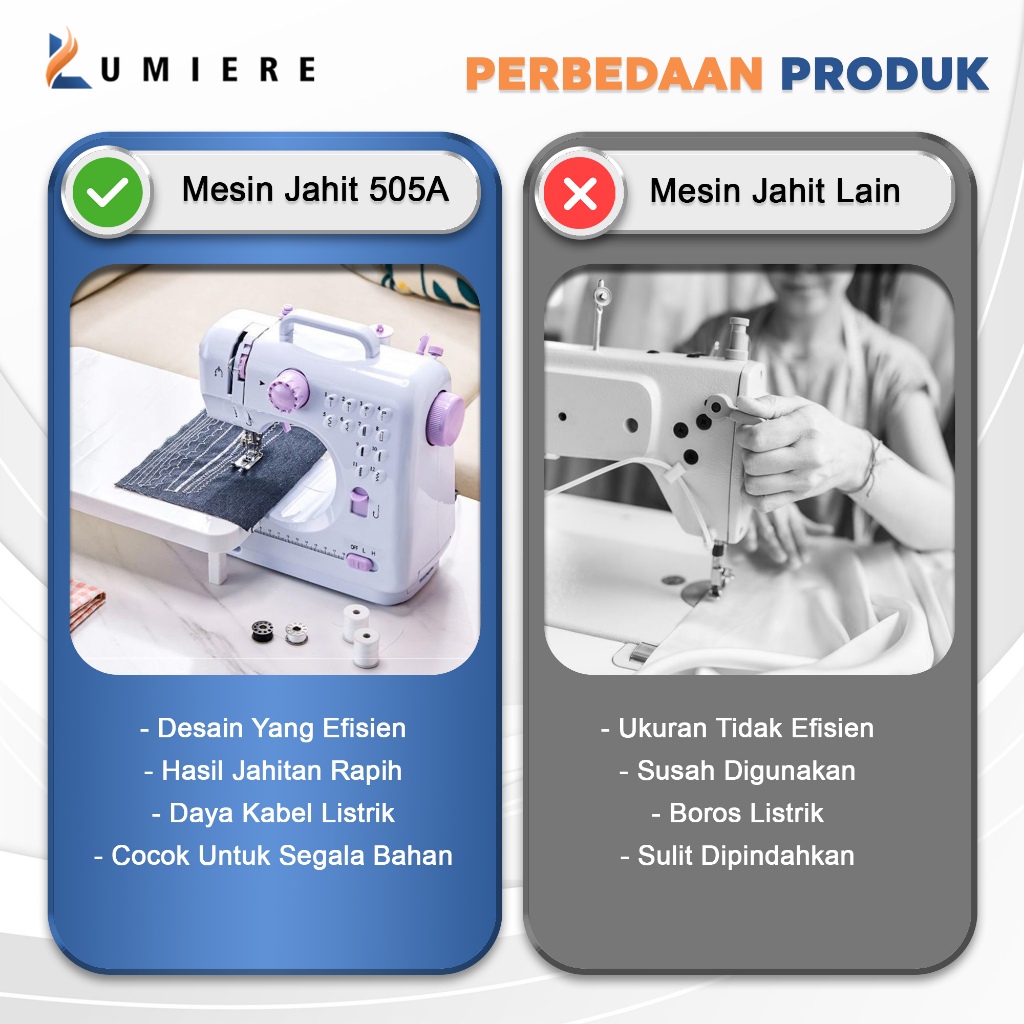 Lumiere - Mesin Jahit Portable Mini Type 202A & 505A Lampu LED + Meja Electric Terbaru Multifungsi