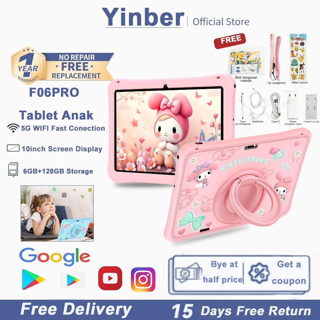 Yinber Tablet Edukasi Anak F06 PRO tablet anak android Kids Edition 6GB+128GB Tablet Android 10.1 inch Layar Full S