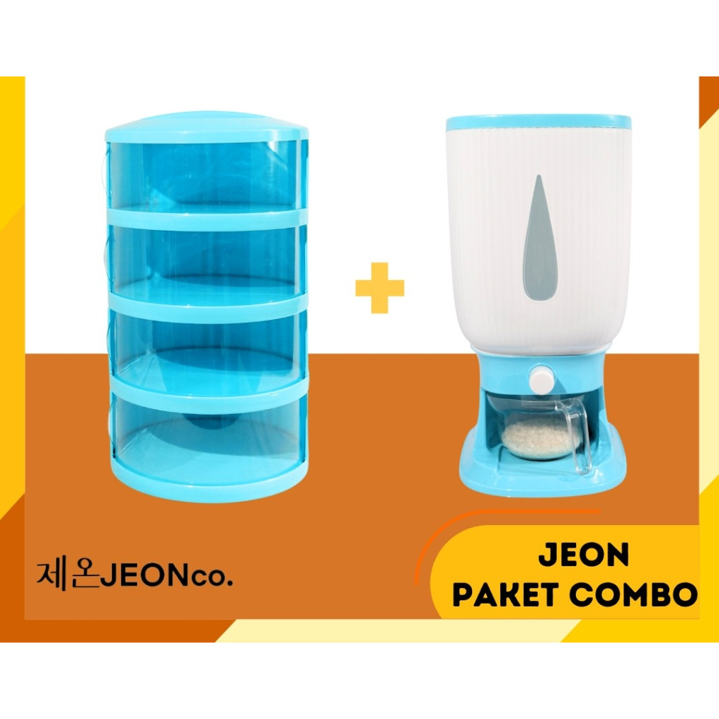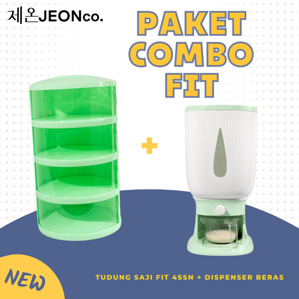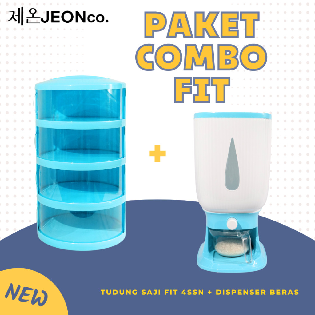 PAKET COMBO FIT Tudung Saji FIT 4 Susun (PERLU DIRAKIT) Lebih Tebal Food Grade + Dispenser Beras Modern Tempat Wada