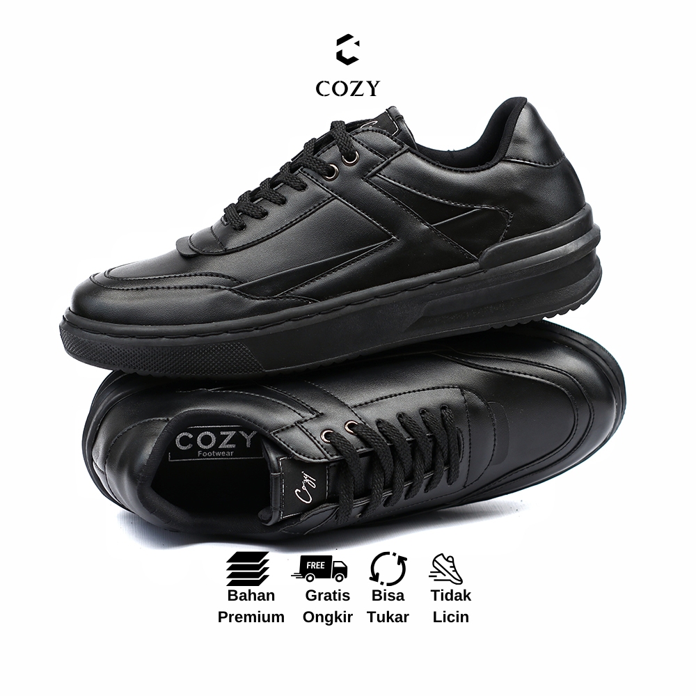 CZY Sevill Black Sepatu Casual Formal Pria Hitam Pantofel Kerja Kantor Kuliah Sekolah