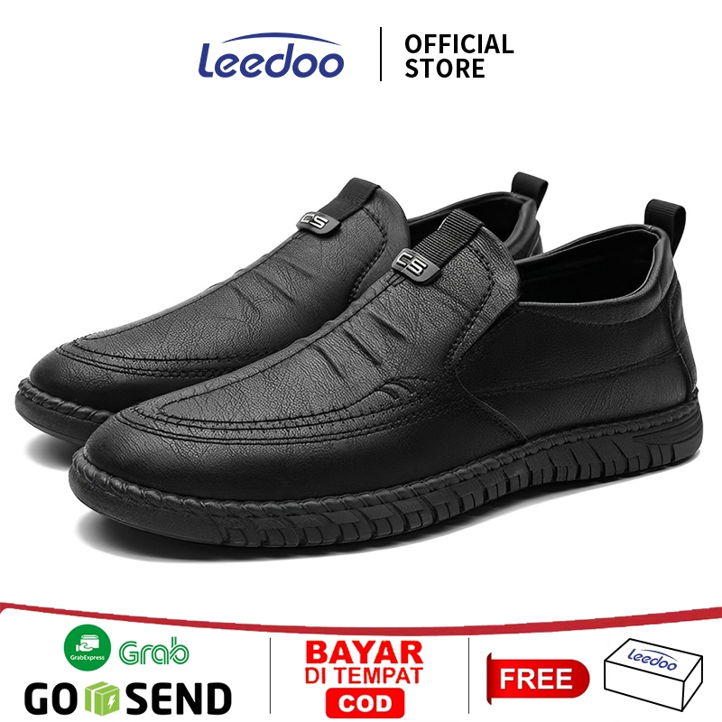 Leedoo Sepatu Slip On Pria Casual Sepatu Pantofel Kulit Formal Sepatu Kerja Kuliah MC483