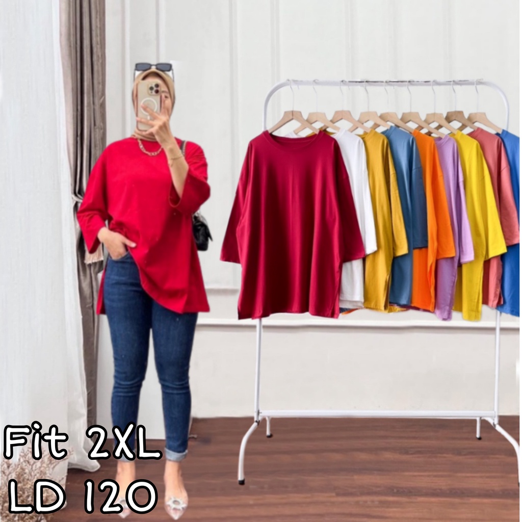 22602 - KAOS CEWEK POLOS LENGAN 7/8 FIT 2XL PAKAIAN CASUAL TSHIRT TUMBLR TEE BAJU ATASAN WANITA OVERSIZE SLIT T-SHI