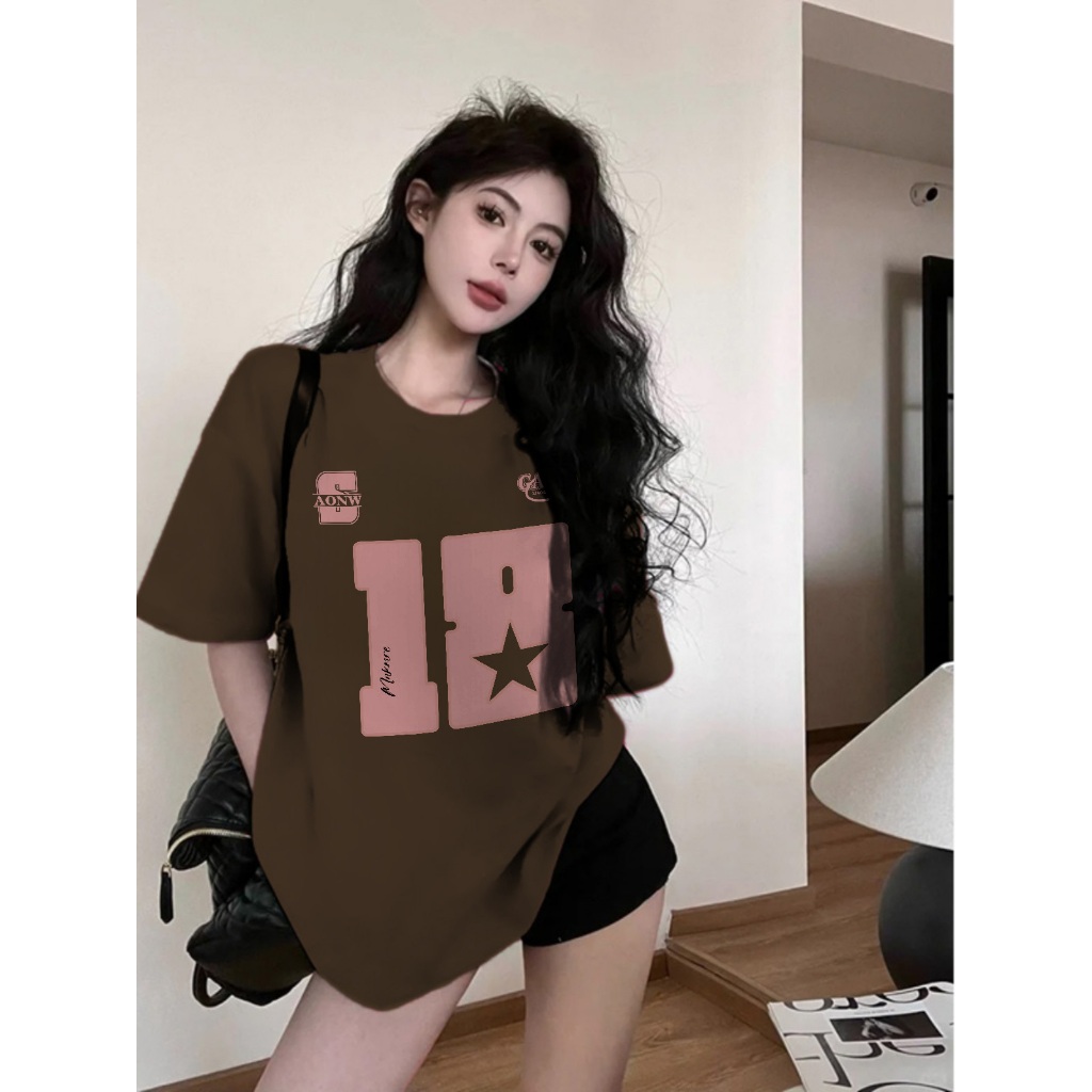 SEZO Baju Wanita Kaos Anwed Hitam Number 18 Baju Kaos Oversize Wanita Korean 100 PERSENCotton | Atasan Wanita Korea Style
