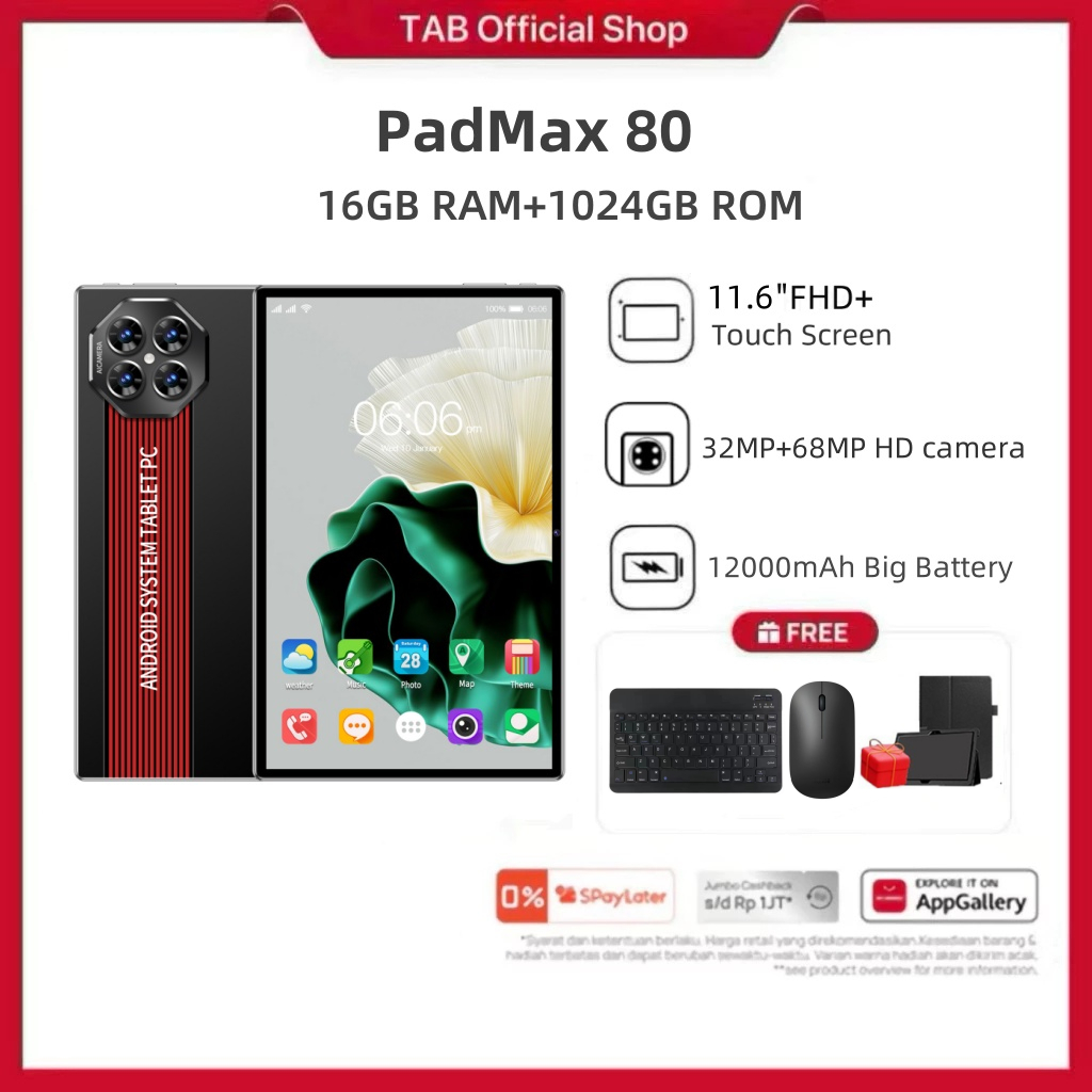 【Free Mouse Keyboard 】Tablet PadMax 80 11.6inch 16GB+1024GB Murah Tablet Android 5G Tab Dual SIM Wifi Menonton Film