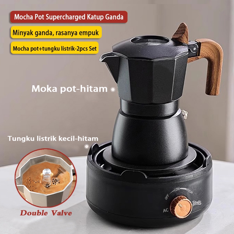 Mocha Pot Espresso Pot Double Valve Moca Pot Tungku Listrik Set Mocha Supercharged Katup Ganda Coffee Pot Teko Kopi