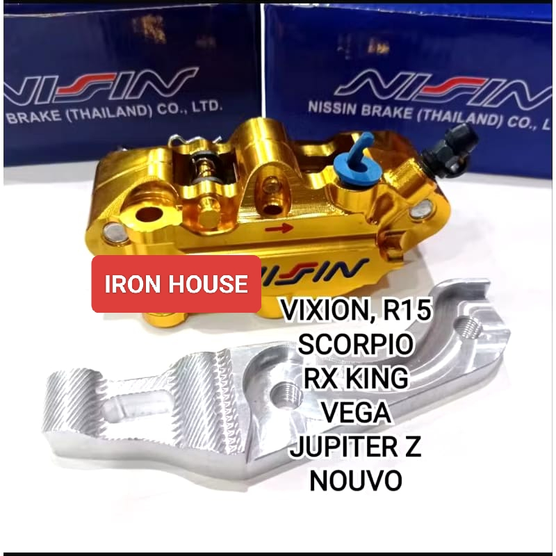 Paket Kaliper Monoblok 4 Piston Depan + Breket Yamaha Vixion / Nouvo / RX King / Scorpio / Byson / Jupiter Z1/ Fizr