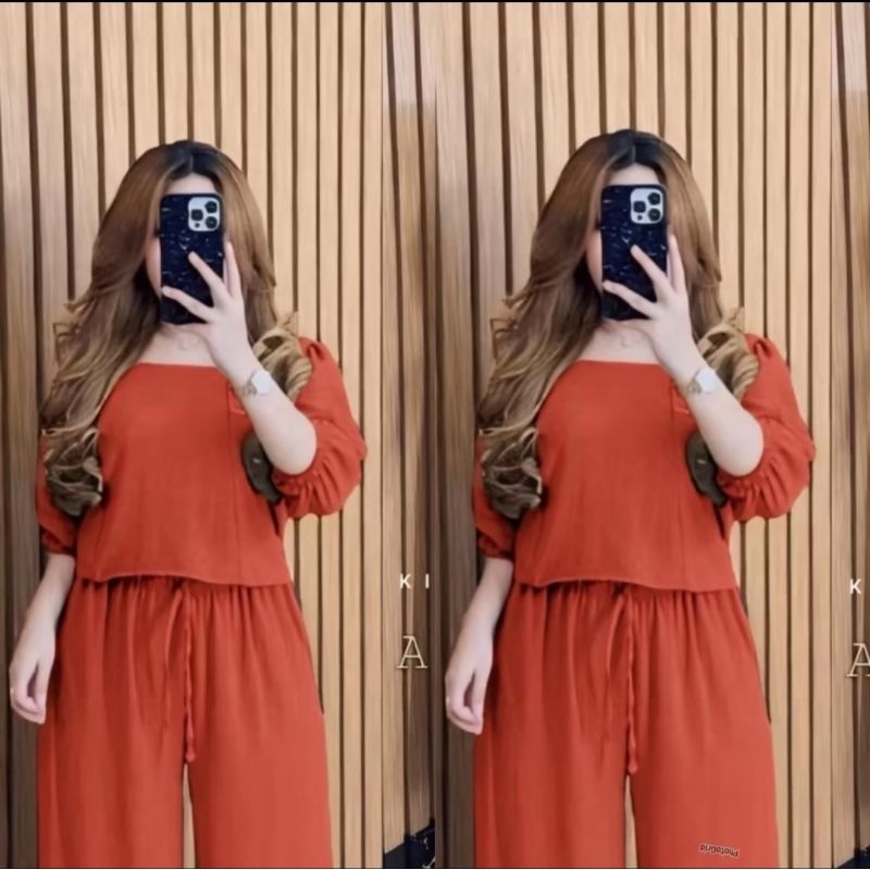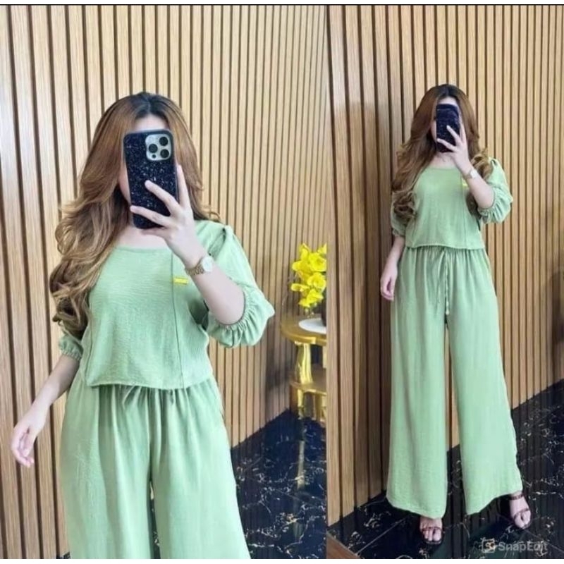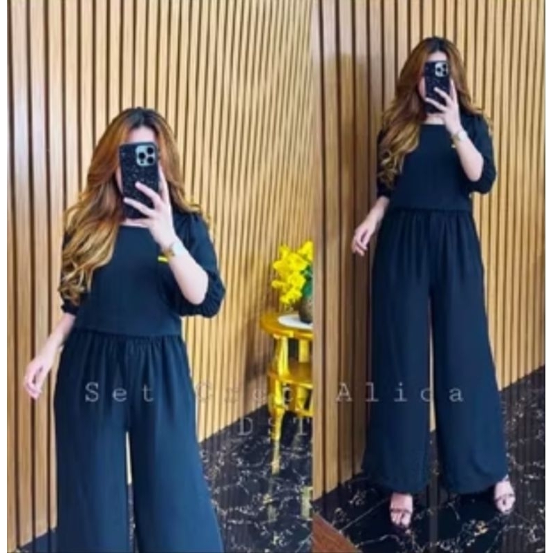 One set Cringkle Wanita / Setelan Alica Set Crop Top Wanita Kekinian /Baju setelan One set Crinkle