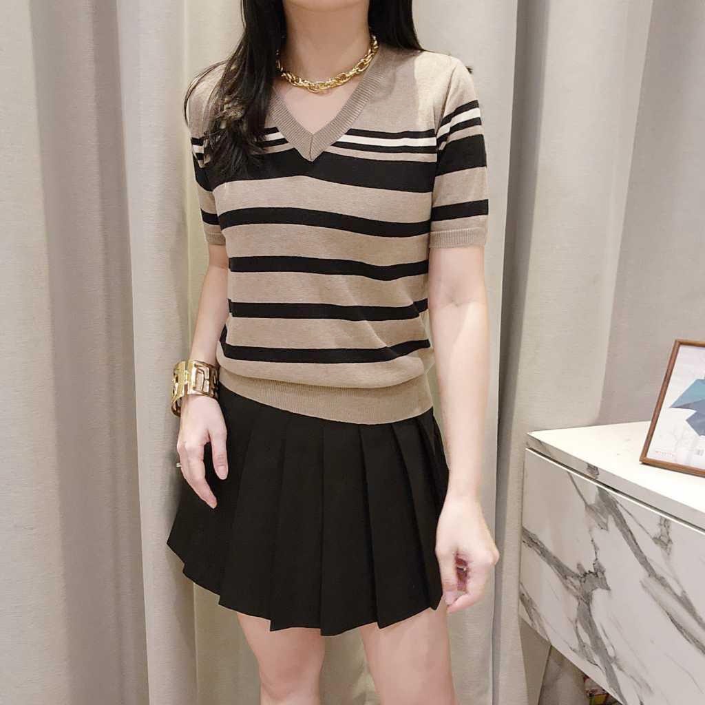 TokoMilkan Atasan Wanita Vente Top Strip Rajut Premium Korean Terbaru