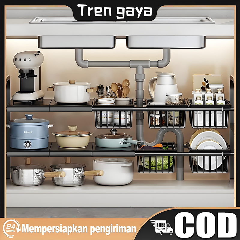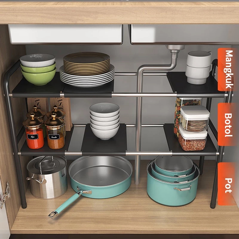 Rak Dapur Serbaguna 3/4/5 Tingkat untuk Wastafel/Rak Pot Bawah Sinki - Rak Kolong Dapur Dapat Ditarik & Diperluas M