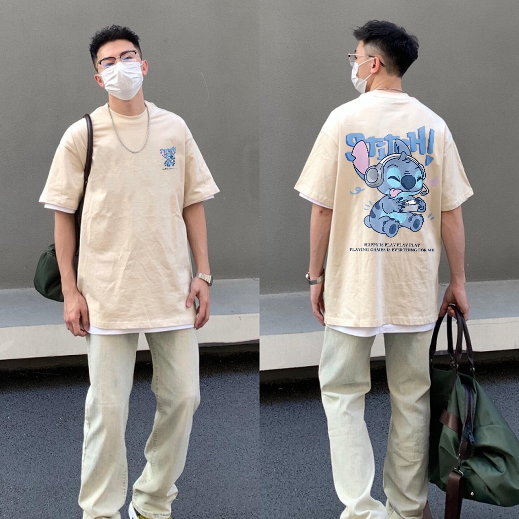 Marlacoeur Pola Stitch Kartun | Kaos Cowok Distro Original 100 PERSEN | Baju Oversize Pria | Kaos Pria Premium Tebal | Ka