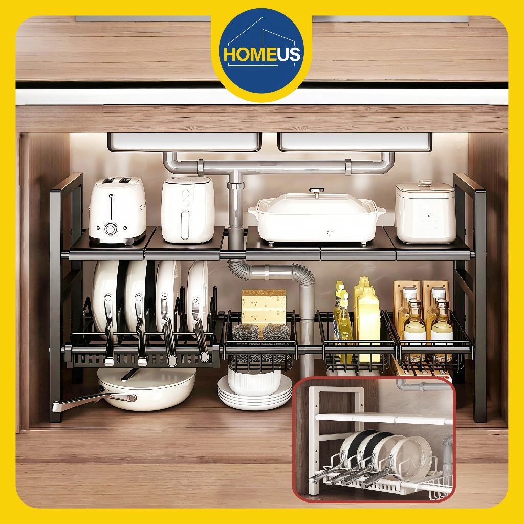 Homeus Rak Dapur Stainless Steel yang Dapat Diperluas Rak Dapur Dapur Rak Panci Rak Wastafel Rak Serbaguna