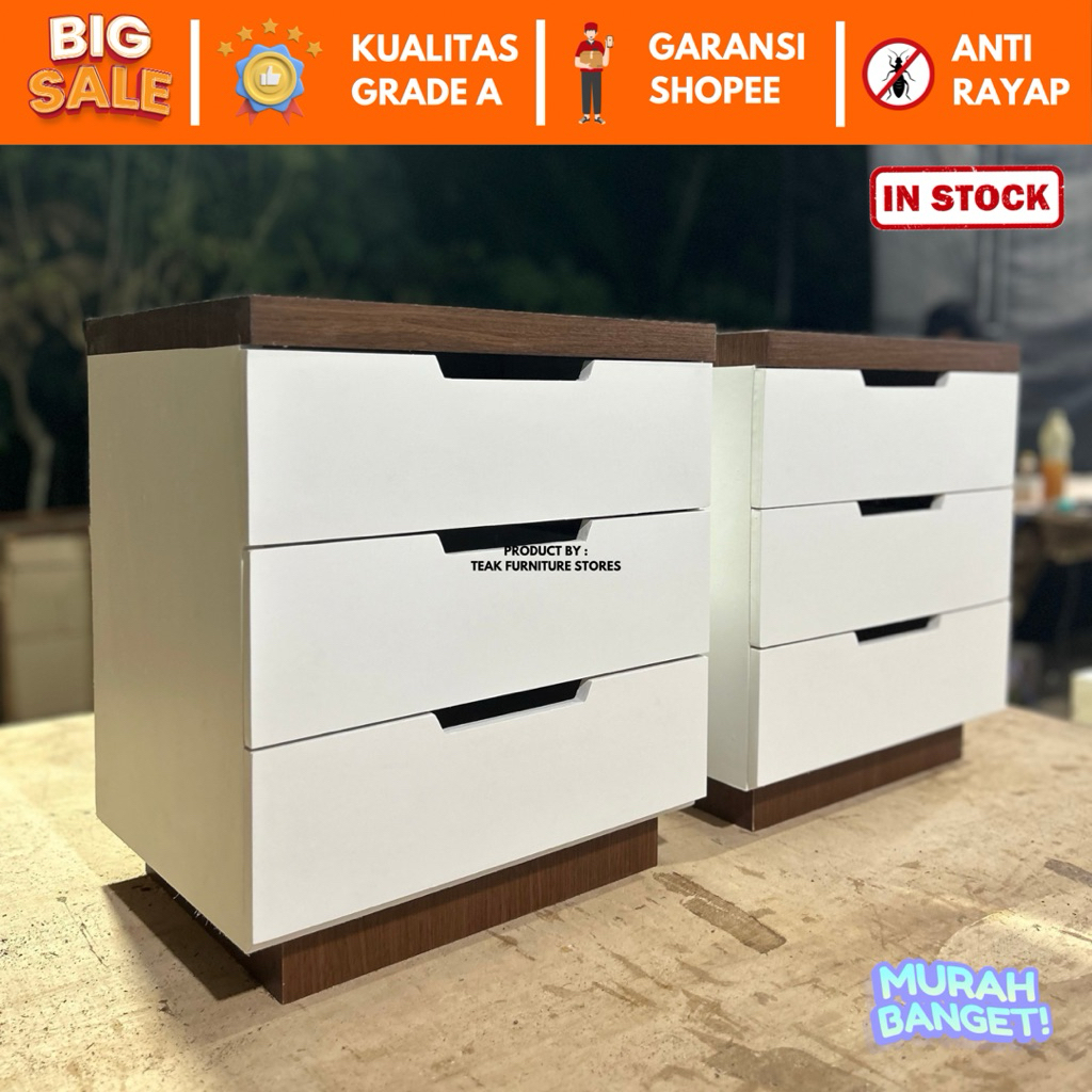 Delsaf Meja Nakas Minimalis bedside Nighstand 3 Laci Murah