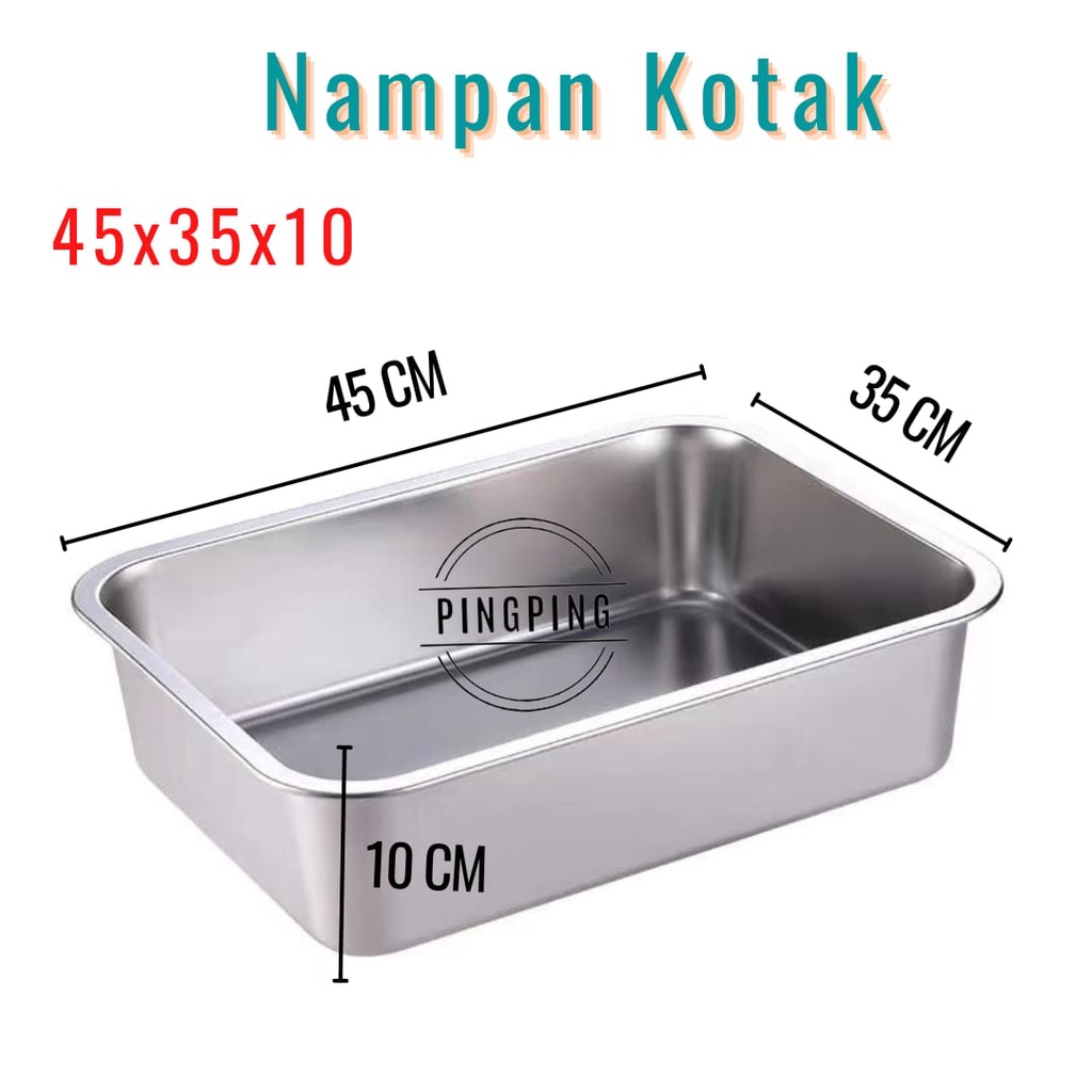 Nampan kotak stainless ukuran 40x30x10, 45x35x10, 36x27x10