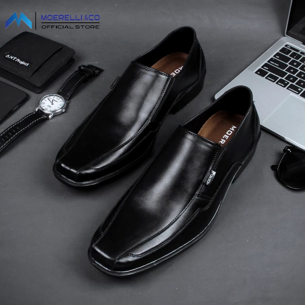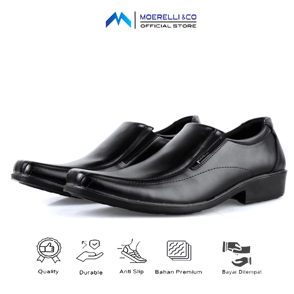 MOERELLI &CO Madelca M7110 Full Blck | Sepatu Pantopel Pria Formal Hitam Kerja Kantor
