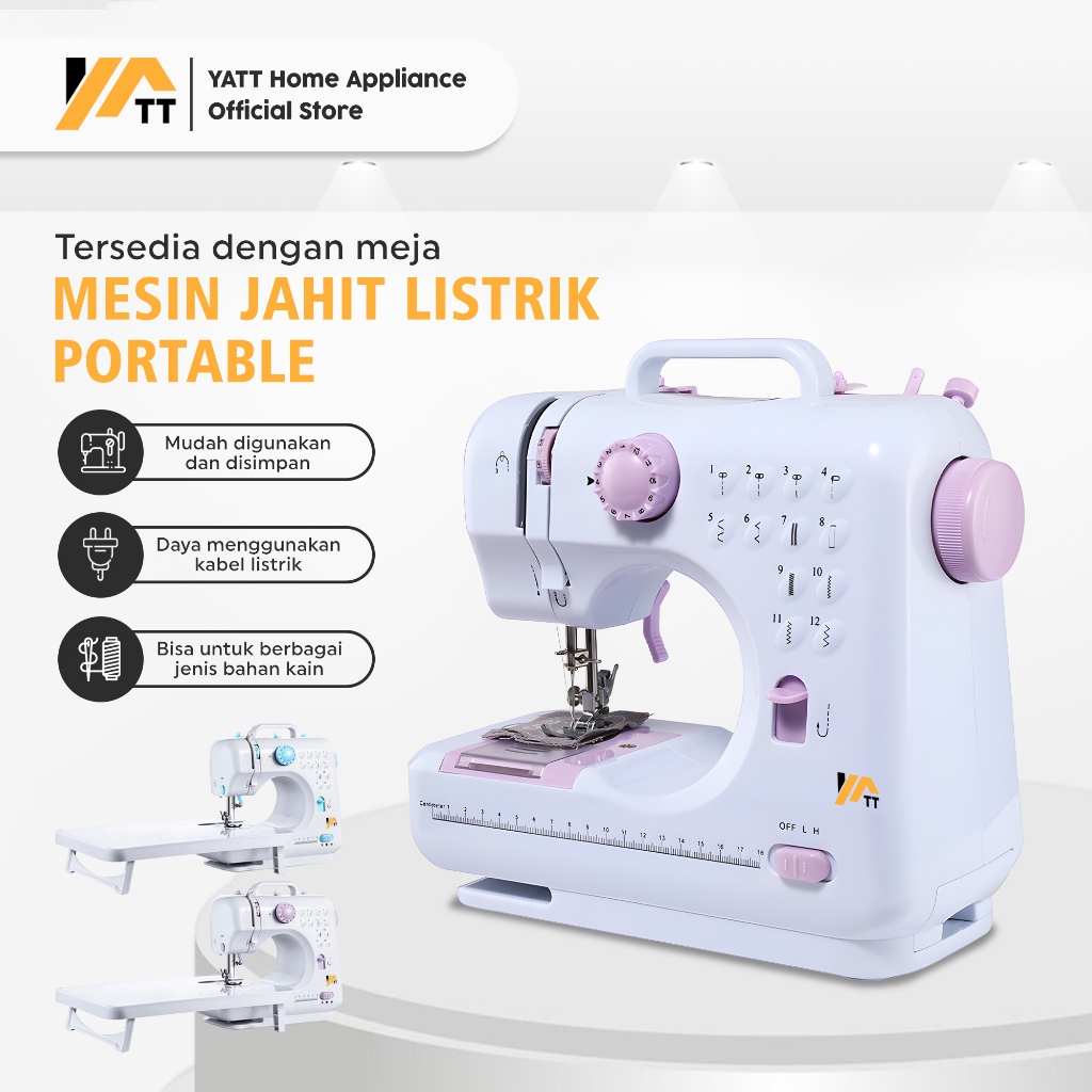 YATT Mesin Jahit Mini Portabel 505A 12 Stitch Pola / mesin Jahit Listrik Pakaian / Mesin Jahit LED
