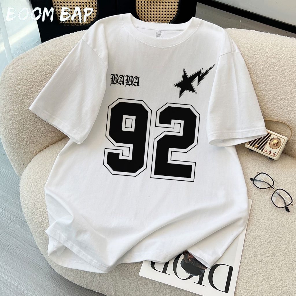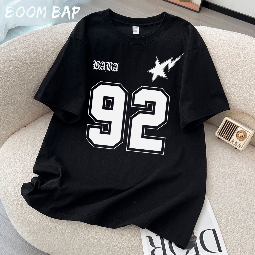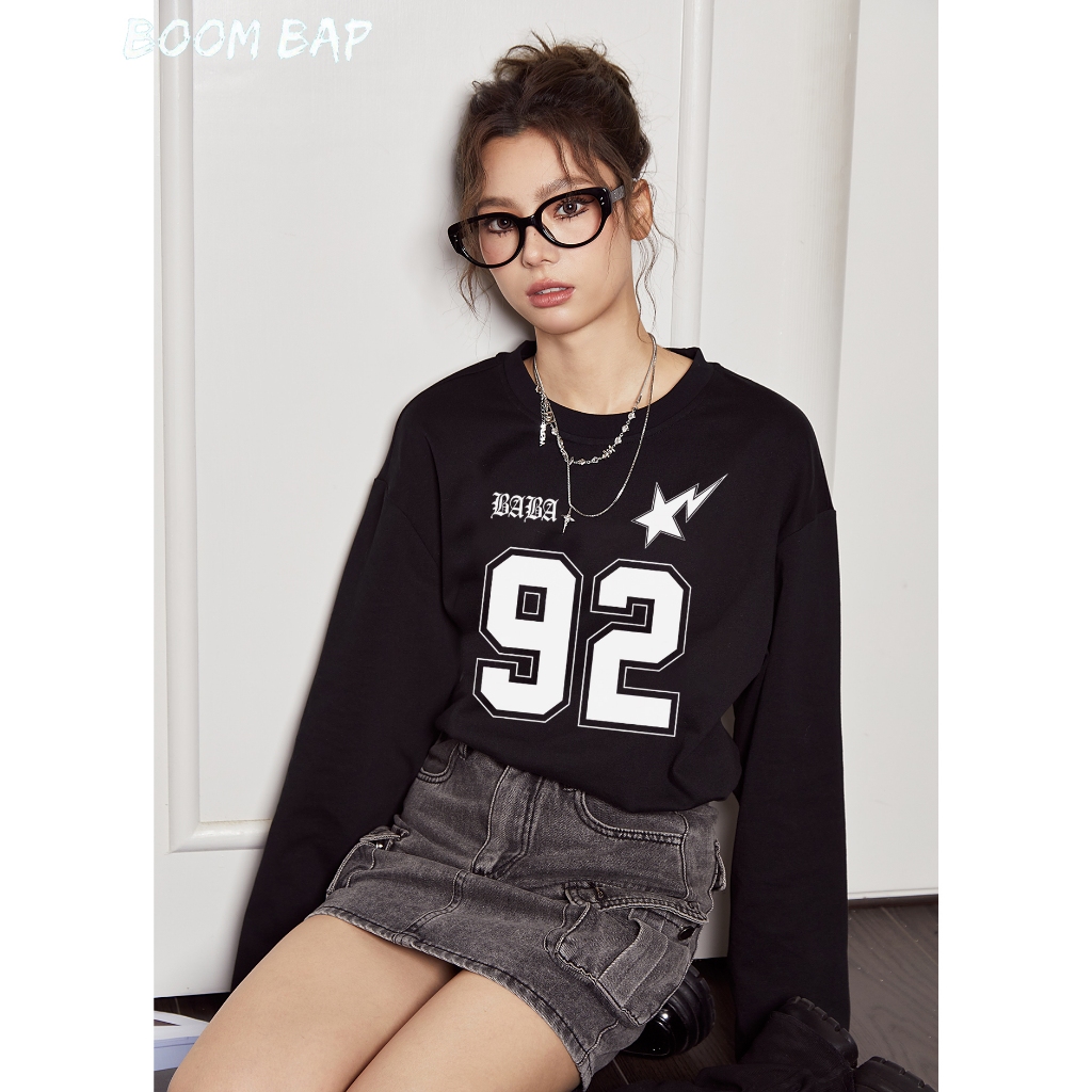 BOOMBAP American retro Style lengan panjang Oversize Nomor 92 Print top| Lengan panjang Wanita Putih | Baju atasan