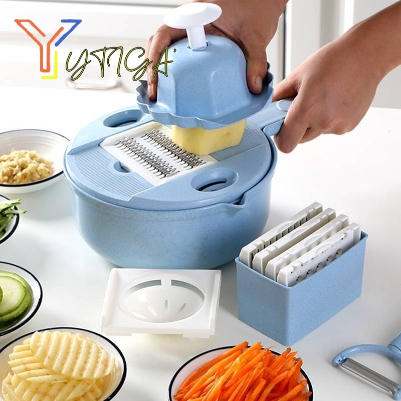 Parutan Serbanguna Stainless Potong Iris Sayur Buah Premium Vegetable Cutter 6 pisau + wadah