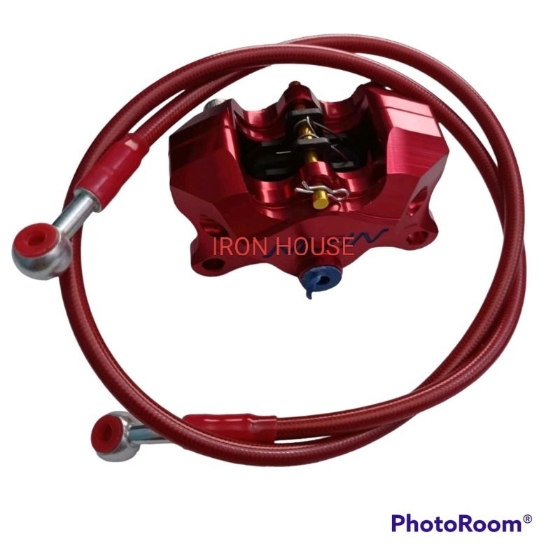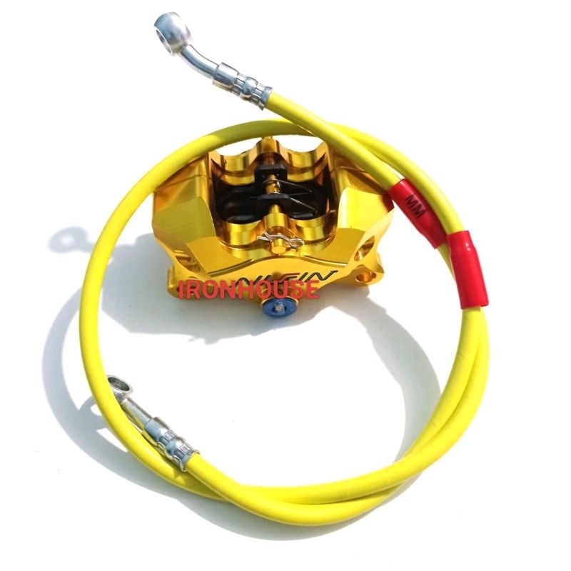 Kaliper Niss 2 piston cnc plus sepasang kampas dan selang rem depan 95cm