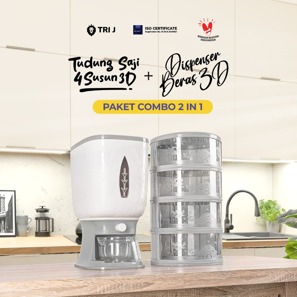 Paket COMBO 2 in 1 Dispenser Beras dan Tudung Saji Japan Peri (Terlaris)