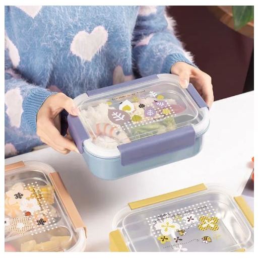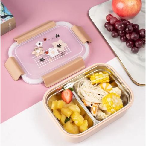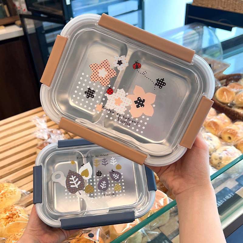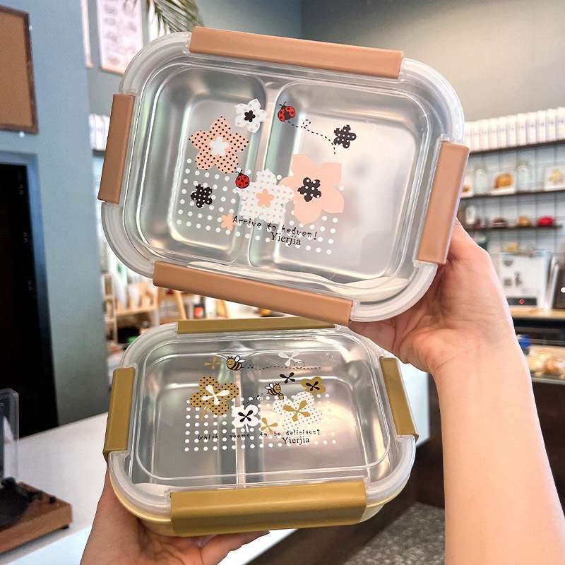 Kotak Makan Siang Stainless 3 Sekat Sendok Kotak Makan Siang Portabel Kotak Penyimpanan Anti Bocor Wadah Makanan Si