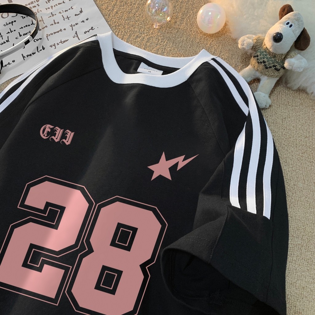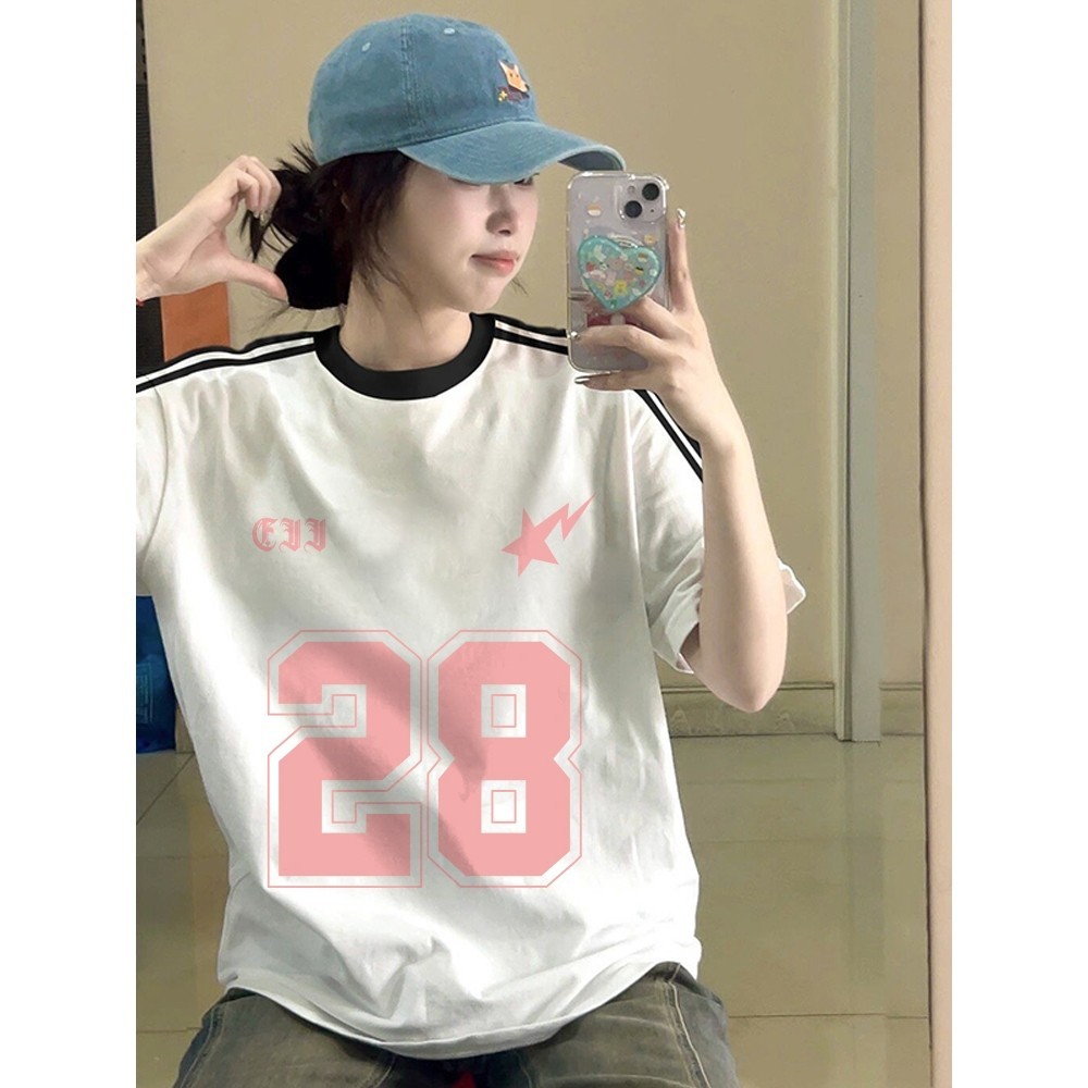 SEZO Baju Wanita Putih Black Kaos Premium Lengan Pendek Oversize Cetak Digital 28 Merah Muda Atasan Wanita Kekinian