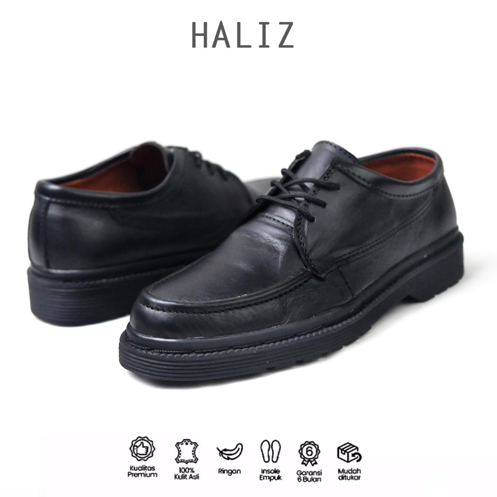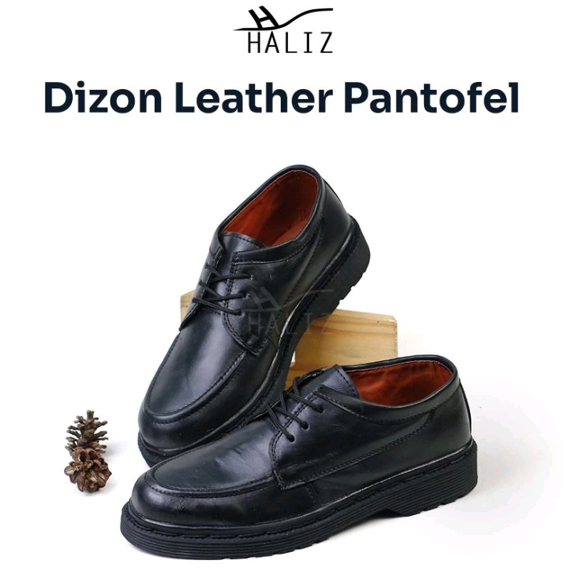 Haliz - Dizon Sepatu Formal Pantofel Pria Casual Kulit Asli - Hitam