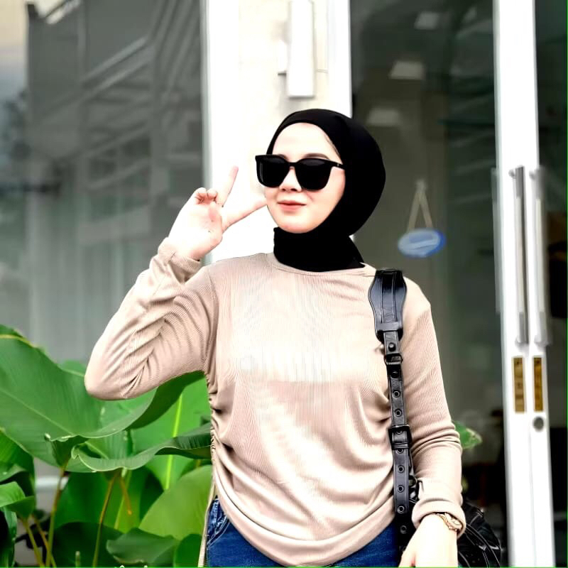 Valen Blouse Rajut Wanita Lengan Panjang - Model Slimfit Kekinian Kerut Samping