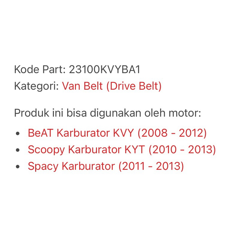van belt assy beat lama, ban penggerak set beat 23100-KVY-BA1 AHM ORI