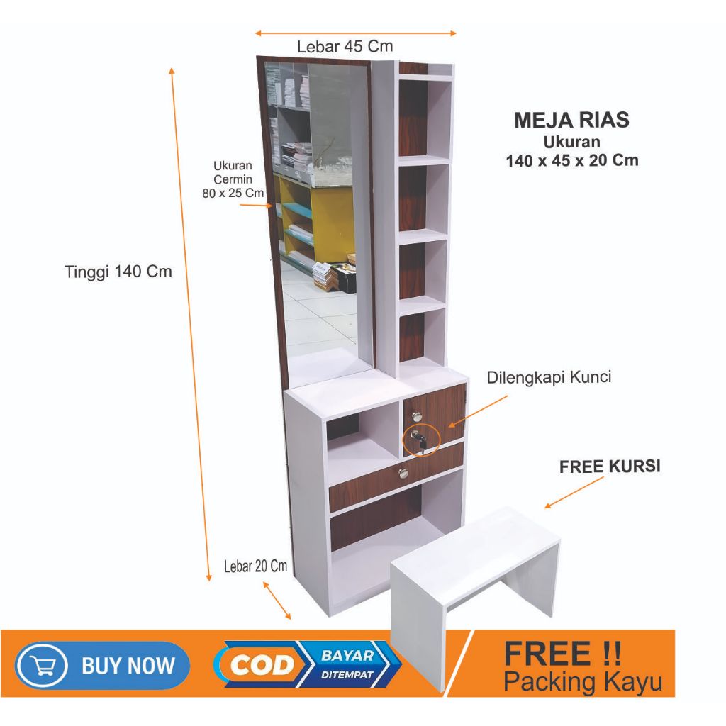 Meja Rias 4 Laci Dilengkapi Kursi Ukuran 120 x 40 x 18 Cm