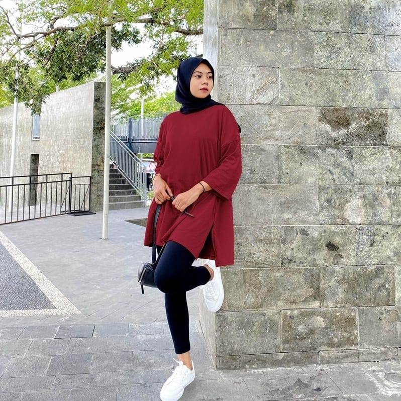 22602 - KAOS CEWEK POLOS LENGAN 7/8 FIT 2XL PAKAIAN CASUAL TSHIRT TUMBLR TEE BAJU ATASAN WANITA OVERSIZE SLIT T-SHI