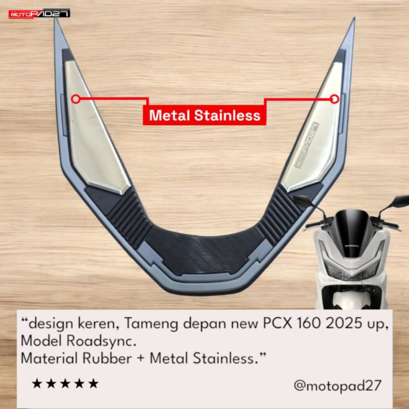 COVER TAMENG DEPAN NEW PCX 160 2025 UP RUBBER STAINLES MODEL ROADSYNC