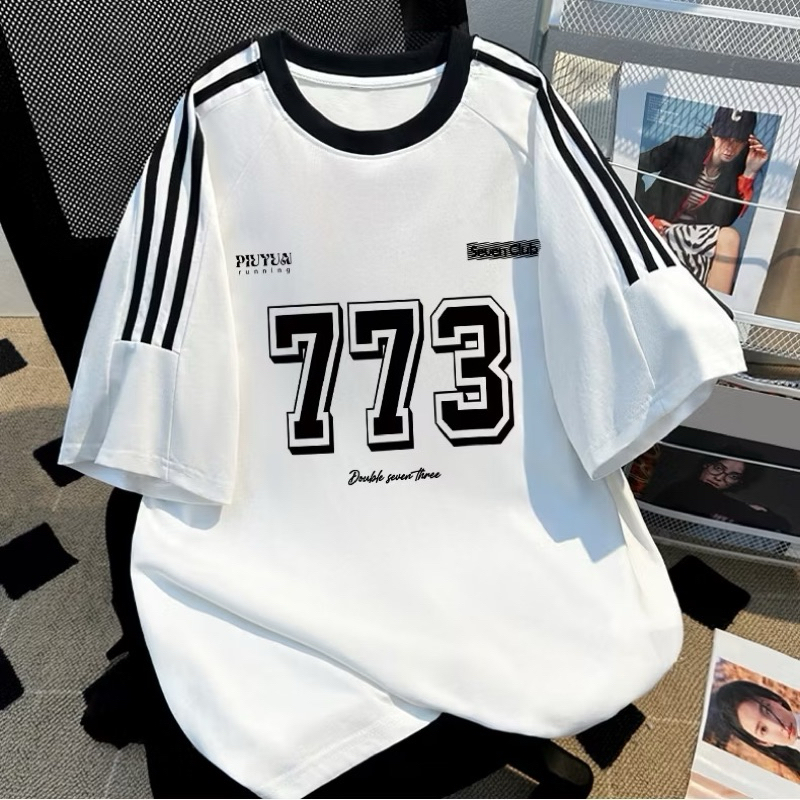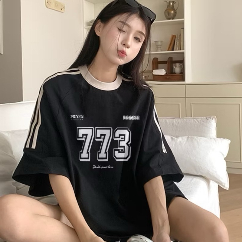 Tshirt Lengan Pendek Kaos Oversize Motif Garis Tiga 773 Korean Style Bahan 100 PERSEN Cotton