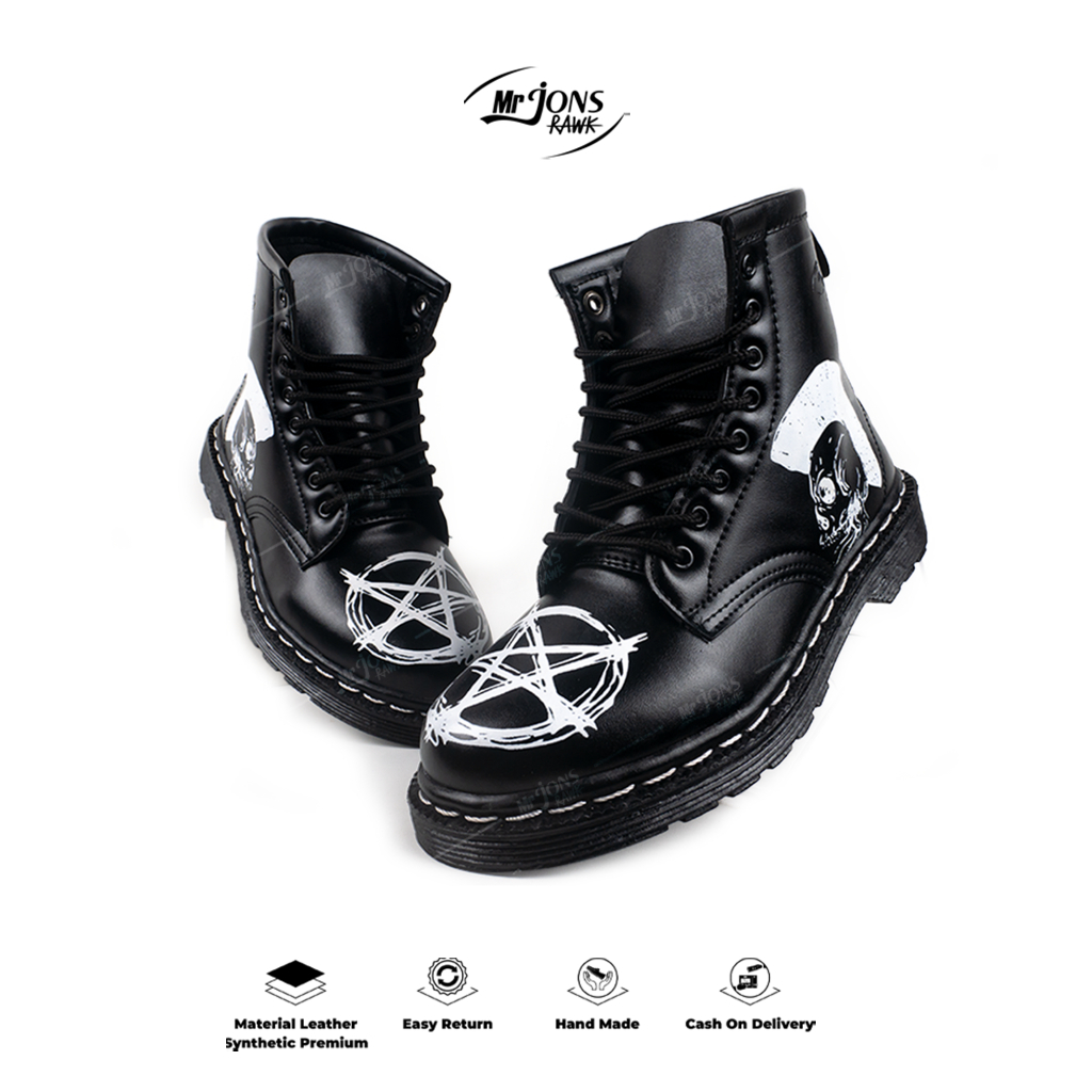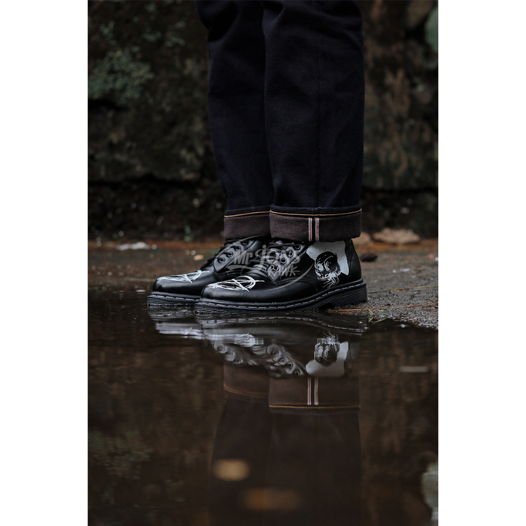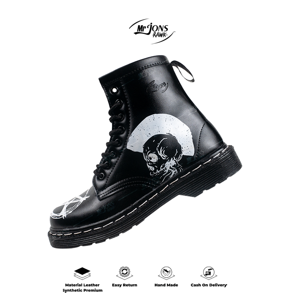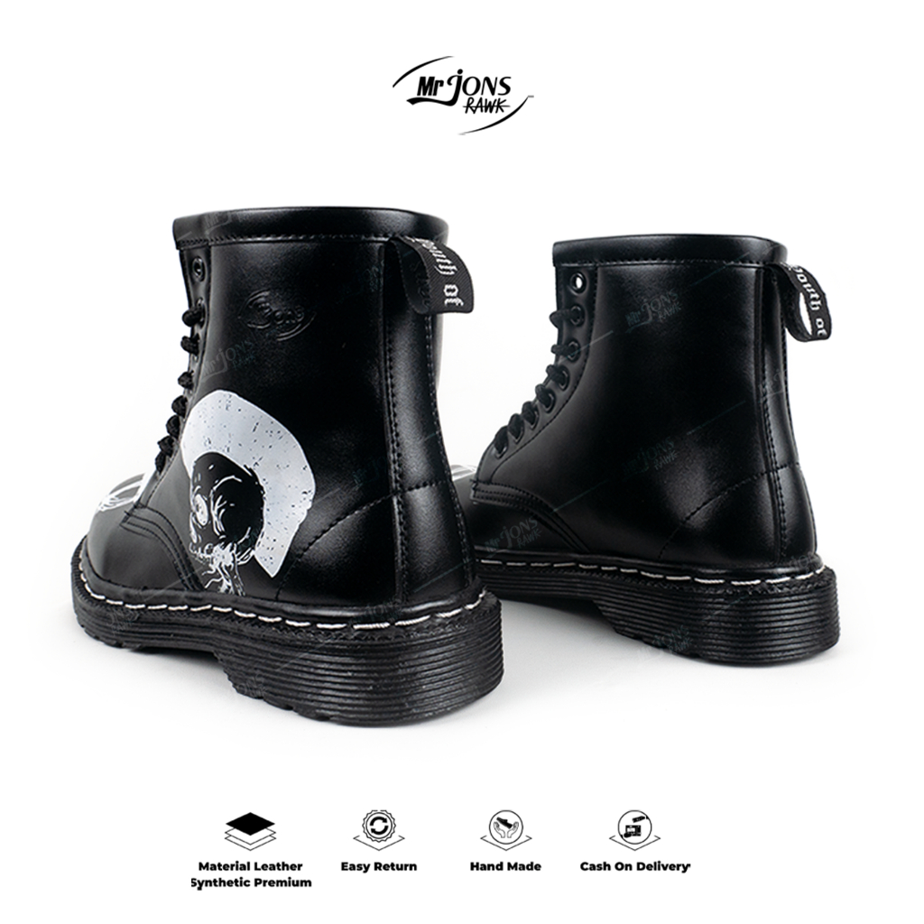 Mr.Jonsrawk Official - Sepatu Formal Boots Model 8 Hole Pria Wanita Hitam Bermotif