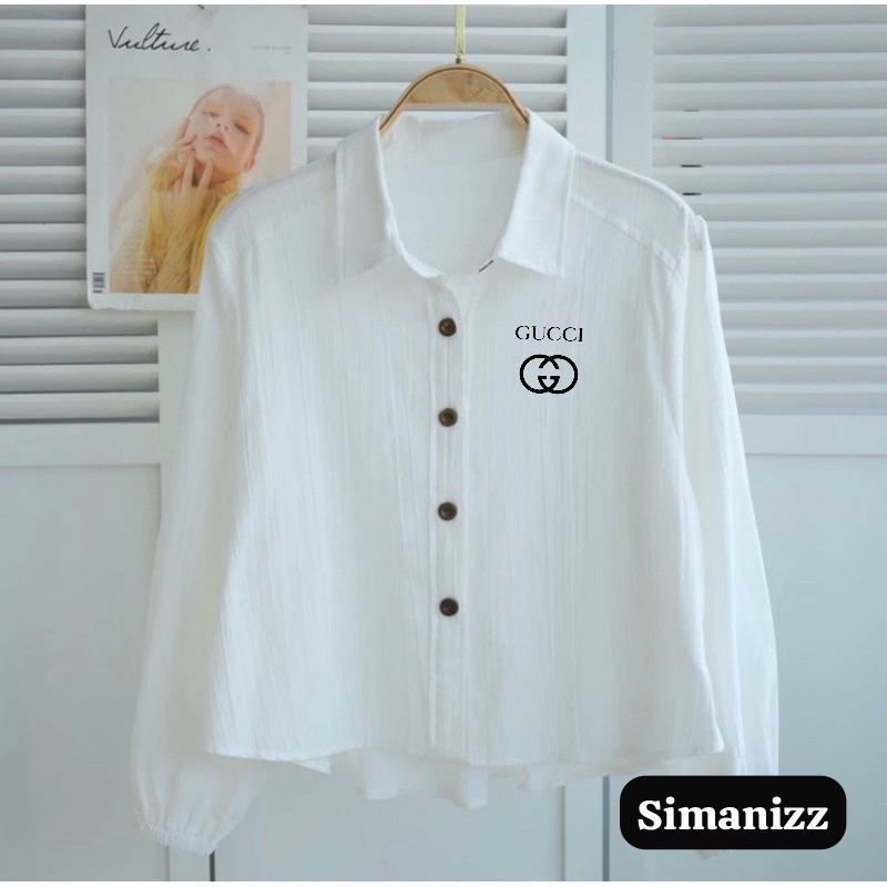 Blouse Wanita Crop Leher V Lengan Karet Logo Samping Kekinian / Kemeja Wanita V Korean Style / Baju Wanita Crop Len