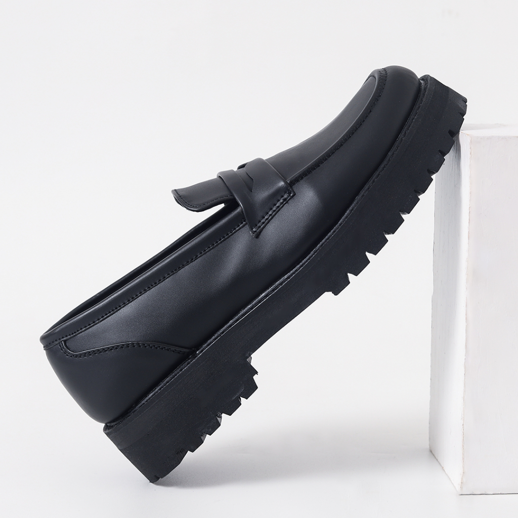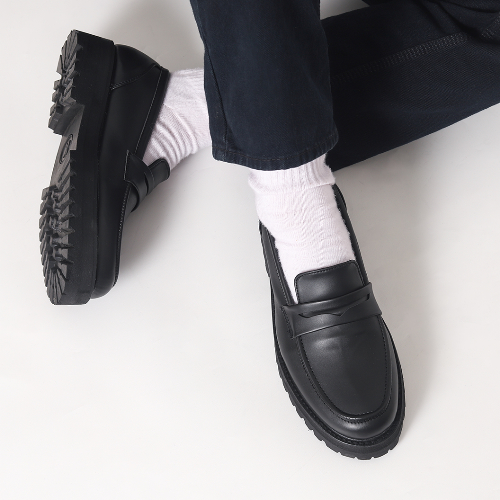 Kenfa - Mora Black Sepatu Pria Loafer Formal Kerja Kantor Kuliah Slip On Basic Hitam Tinggi Simple