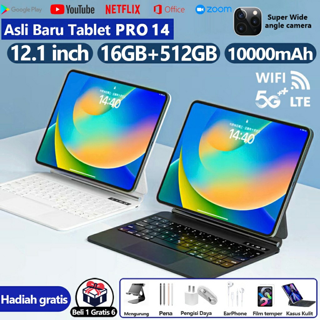 Baru Tablet PC Pro14 Tablet Android 12.1inci Tab murah 5G 90Hz 16(8+8)GB/ 512GB Dual Card Android Pad Baru Produk A