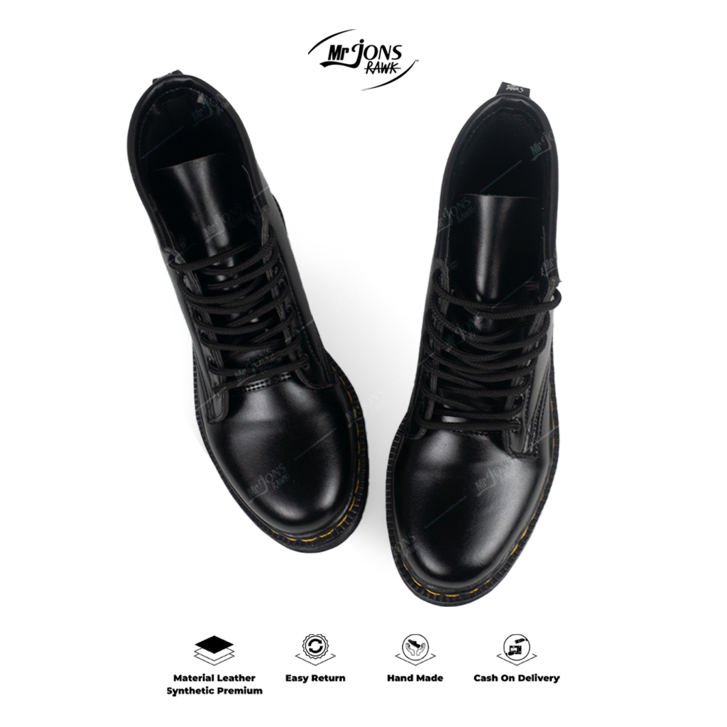 Mr.Jonsrawk Official - Sepatu Formal Boots 8 Hole Pria Wanita Hitam