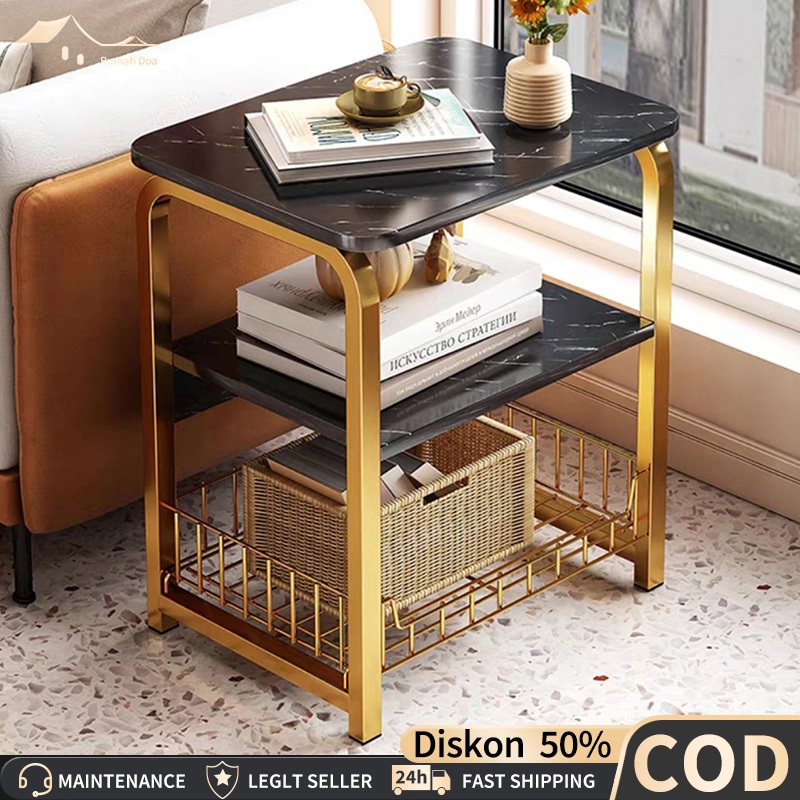 Meja Tamu Meja Kopi Coffee Table Meja Motif Marmer Meja Samping Tiga Tingkat Meja Sudut Meja Nakas Meja Penyimpana
