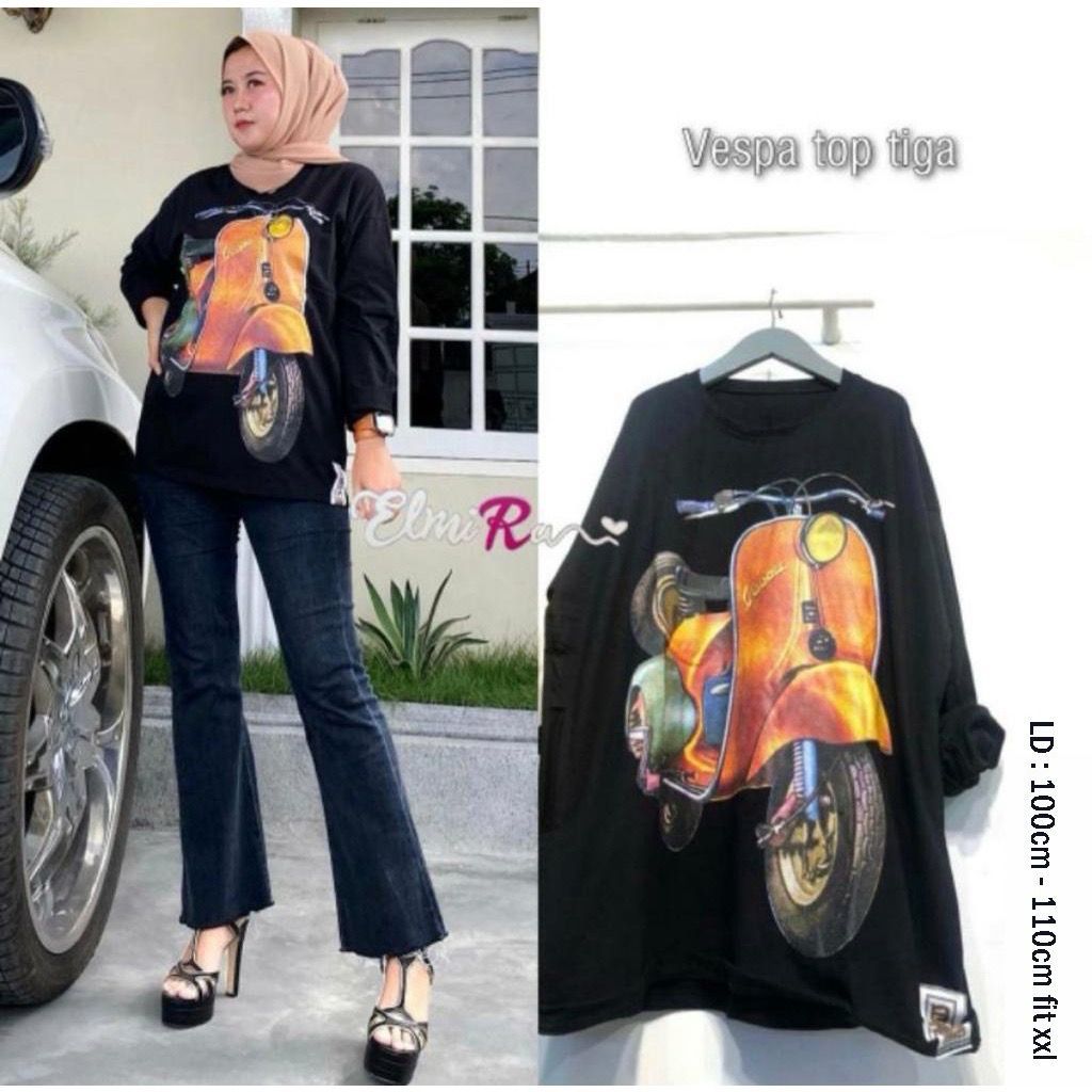 KAOS WANITA LENGAN PANJANG SWEATER MOTIF VESPA KUNO WAY BAJU ATASAN WANITA BAJU WANITA ATASAN
