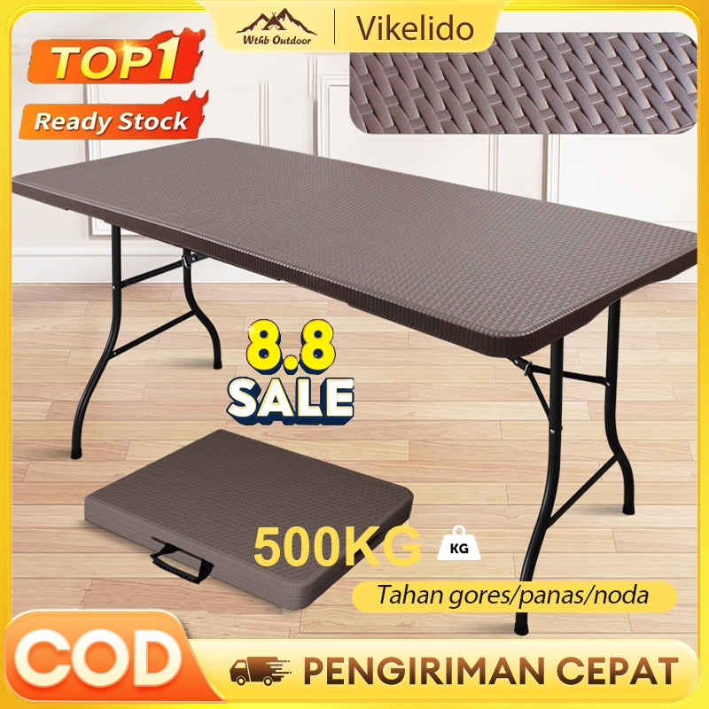 Meja lipat portable cokelat Meja lipat jualan Penebalan 1.2/1.5/1.8m meja lipat plastik meja lipat Outdoor Indoor
