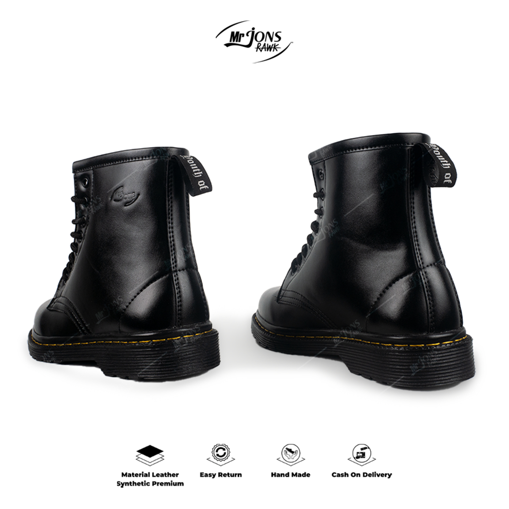 Mr.Jonsrawk Official - Sepatu Formal Boots 8 Hole Pria Wanita Hitam