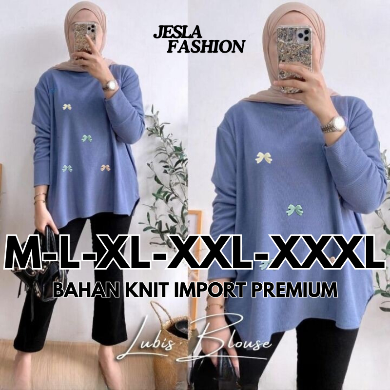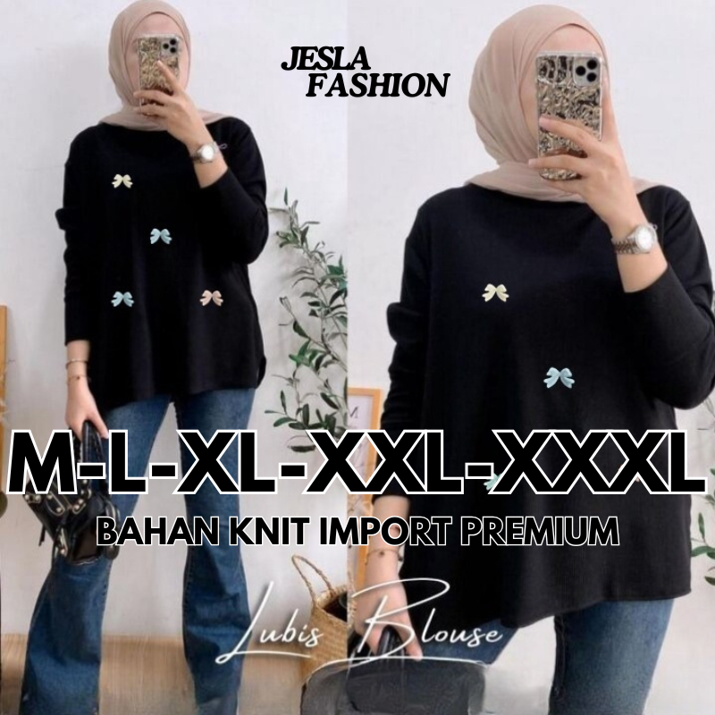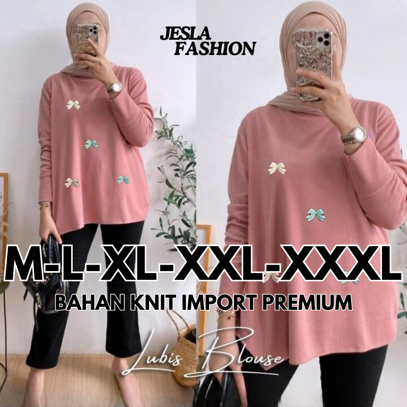 Baju Atasan Wanita Terbaru Lubis Blouse BO Size M L XL XXL XXXL LD 100-130 CM PB 70 CM Bahan Knit Import Premium At