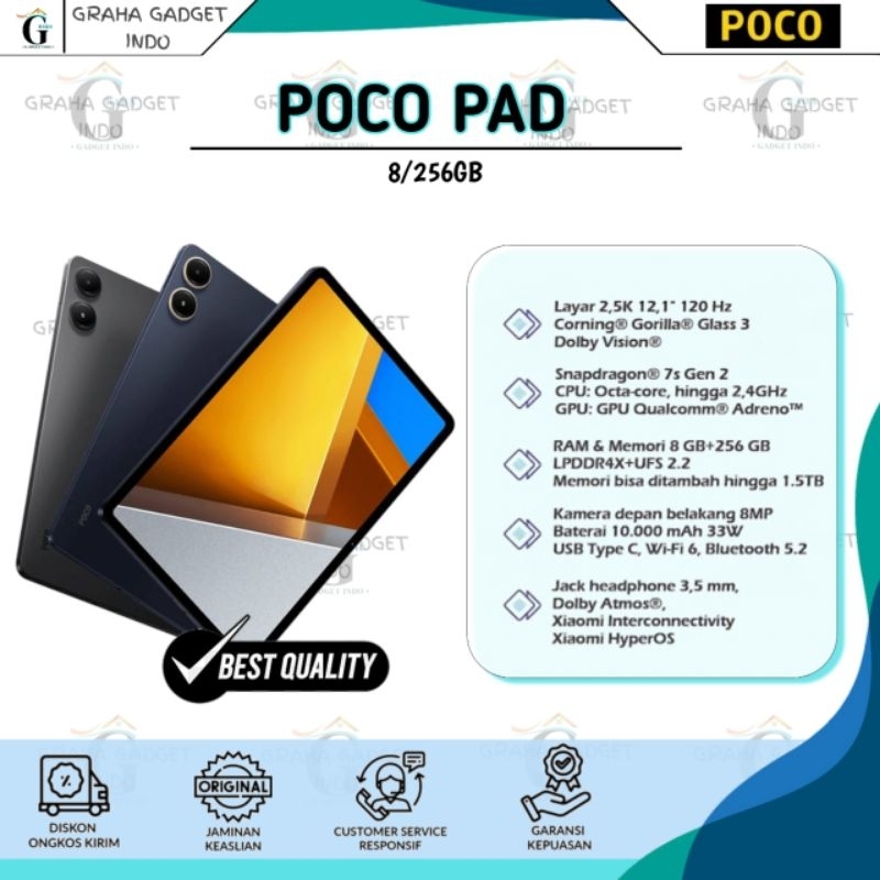 POCO PAD (8/256GB) GARANSI RESMI 100 PERSEN ORIGINAL GARANSI RESMI XIAOMI TAM INDONESIA