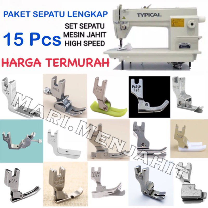 15 Pcs Komplit Set Sepatu Mesin Jahit Highspeed Industial Jarum 1 Juki Typical Brother