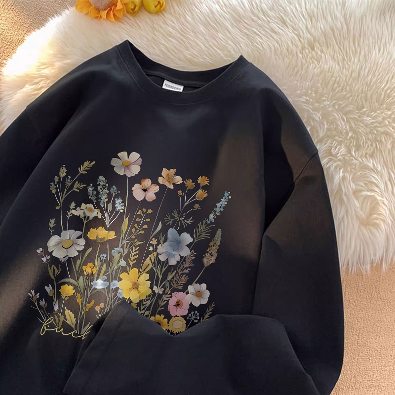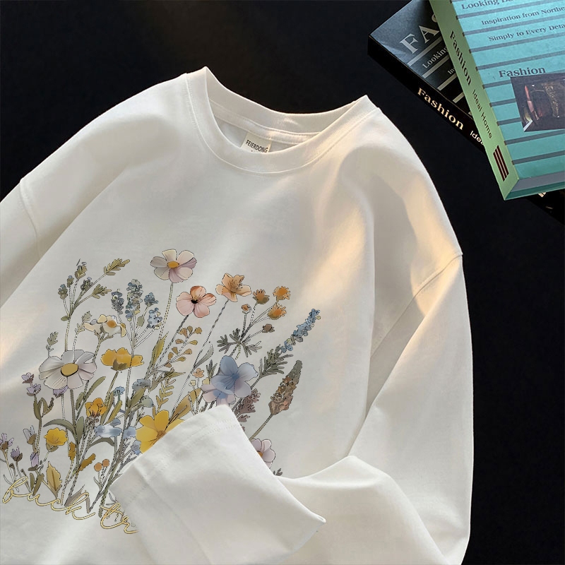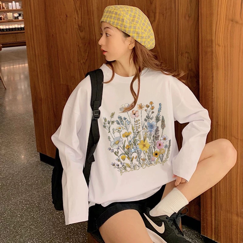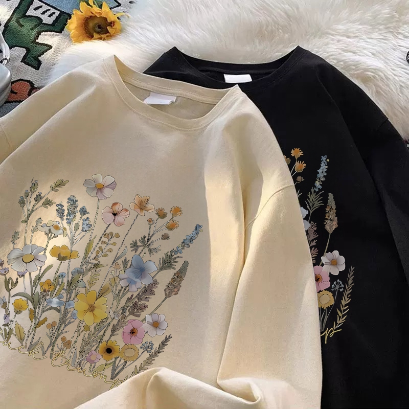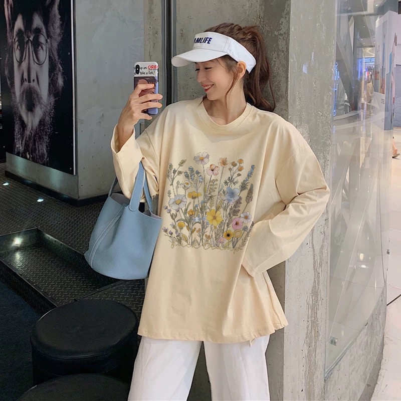 Forteid atasan kaos wanita oversize lengan panjang korean style / Motif bunga / baju kaos polos cotton combed premi