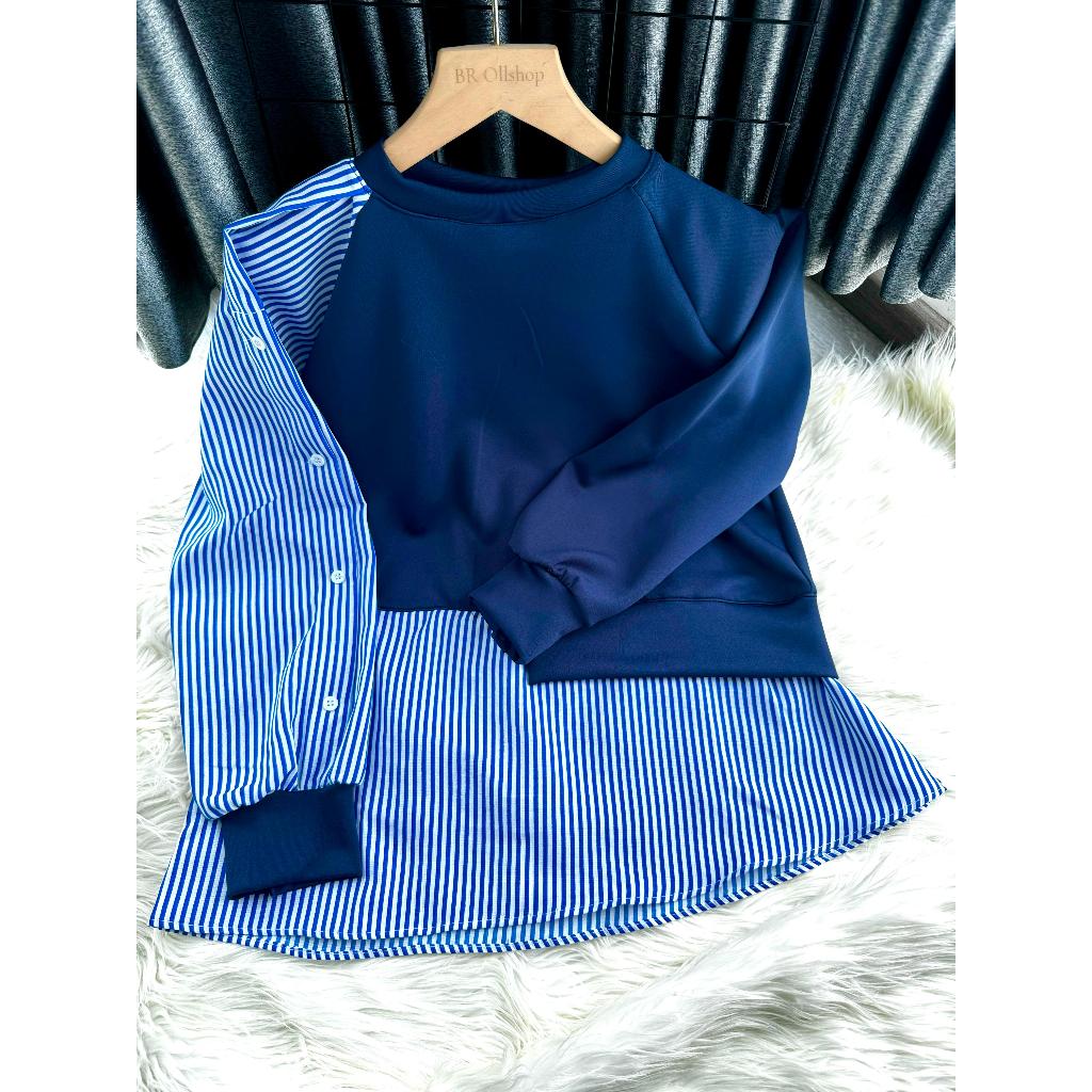 Maulida Blouse Skuba Mix salur Atasan Wanita Korean Style Size S M L XL XXL XXXL 5L