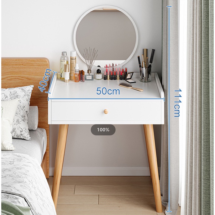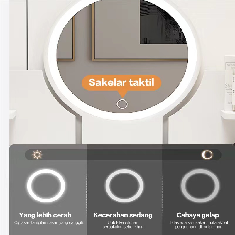 Meja Rias Kayu Meja Rias Makeup Rak Kosmetik Kaca Bundar Meja Rias Putih Minimalis Z17A3