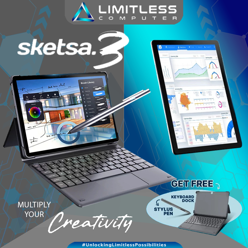 Advan TAB SKETSA 3 Tiger T606 6GB 128GB 10.1 Inch HD IPS Stylus Pen Keyboard Android Tablet