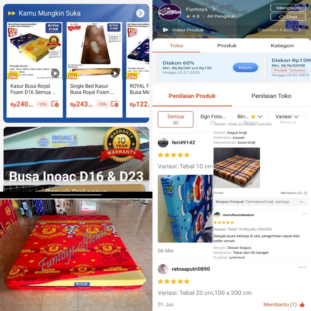 Kasur Busa Royal Foam Tebal 20 cm Free Cover dan Bantal Guling Garansi 10 tahun Tidur Lebih Nyenyak